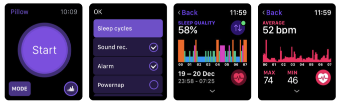 Pillow allows you to track your sleep automatically if you wear the Apple Watch to sleep. If you do not like to wear your Apple Watch to sleep, or do not own an Apple Watch, you can use Pillow with your iPhone. You can view detailed sleep reports and analysis including breakdown of sleep quality, time spent in bed, heart rate analysis, and audio recordings (for those who think they don’t snore!).
