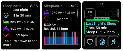 PROS: Sleep Pulse 3, which has a clear interface, is optimized for the bigger screen size of the Apple Watch Series 4. It works with the Infograph Modular watch face so that you can view sleep data directly on the watch face. This app tracks all stages of sleep.
