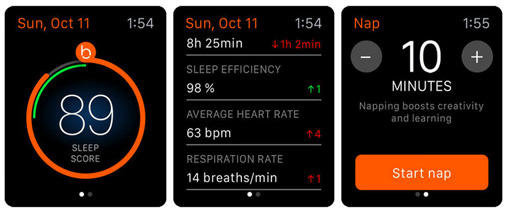 Beddit, tracks your sleep habits and then recommends daytime naps. It can take a look at your sleep score and recommend a quick 30-minute power nap after lunch. It then wakes you up with a silent alarm and updates your sleep score which makes it a daytime sleep tracker.