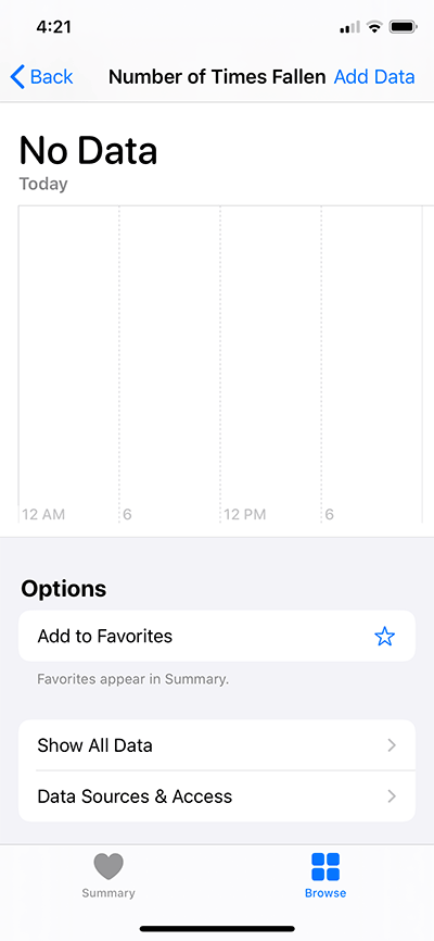 - On the Other Data screen, tap Number of Times Fallen and you’ll see all of the falls that have been recorded