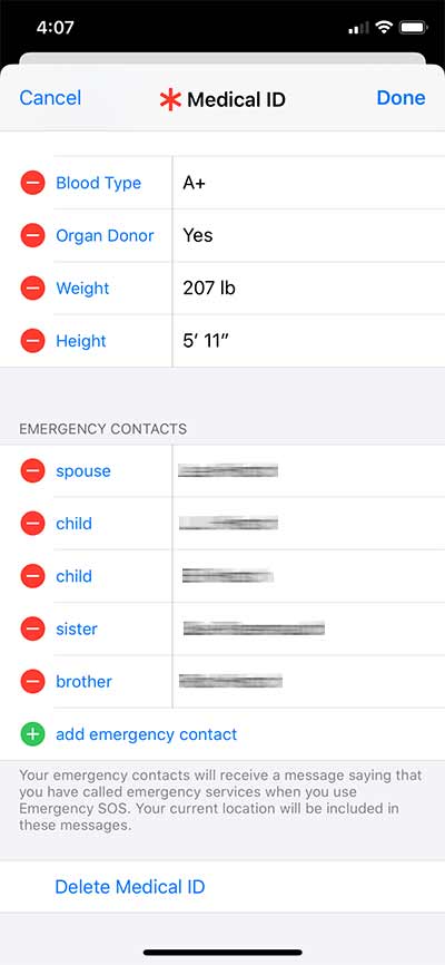 For additional details about the Medical ID on the iPhone, and setting up your Emergency Contacts, see our Blog Post: Emergency Access to Medical ID in the Health App.