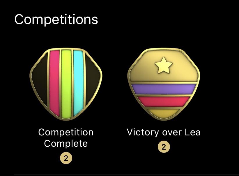 If you want to check the status of your competition, on the sharing screen, tap on the friend you are competing against, and you’ll see a chart with your daily status. When the competition is complete, both competitors will get an award for completing the competition. The winner will get an additional award for winning the competition.